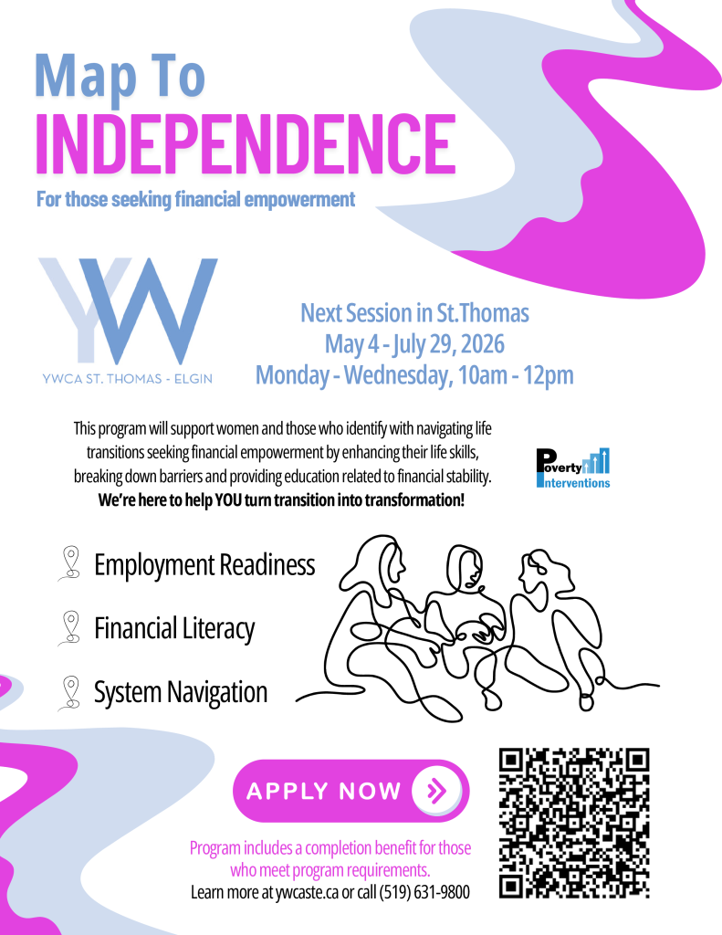 For more information, registration, and referral: Map to Independence – YWCA St. Thomas – Elgin